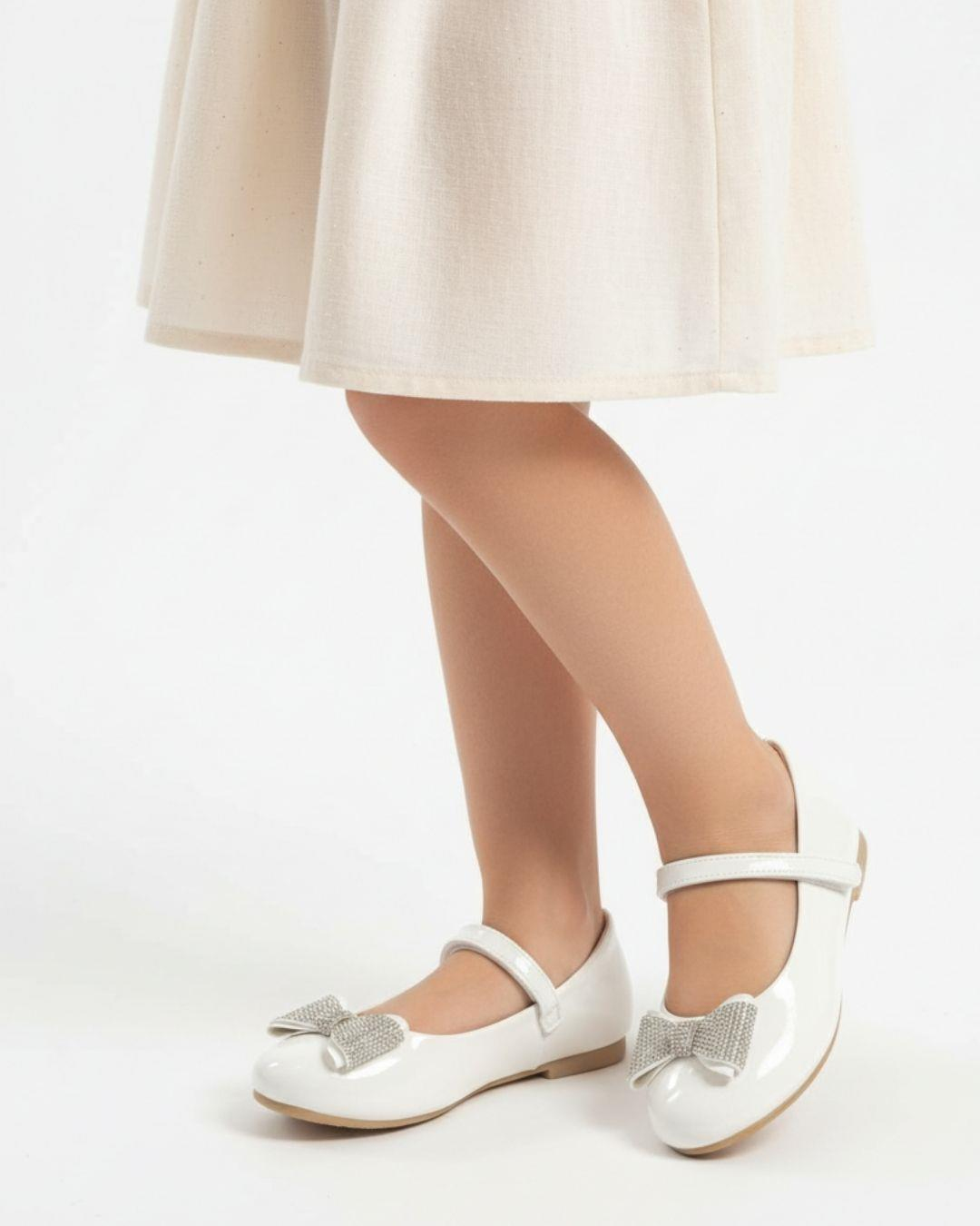 Kız Çocuk Beyaz Rugan Taşlı Fiyonklu Babet (RC-162 06)